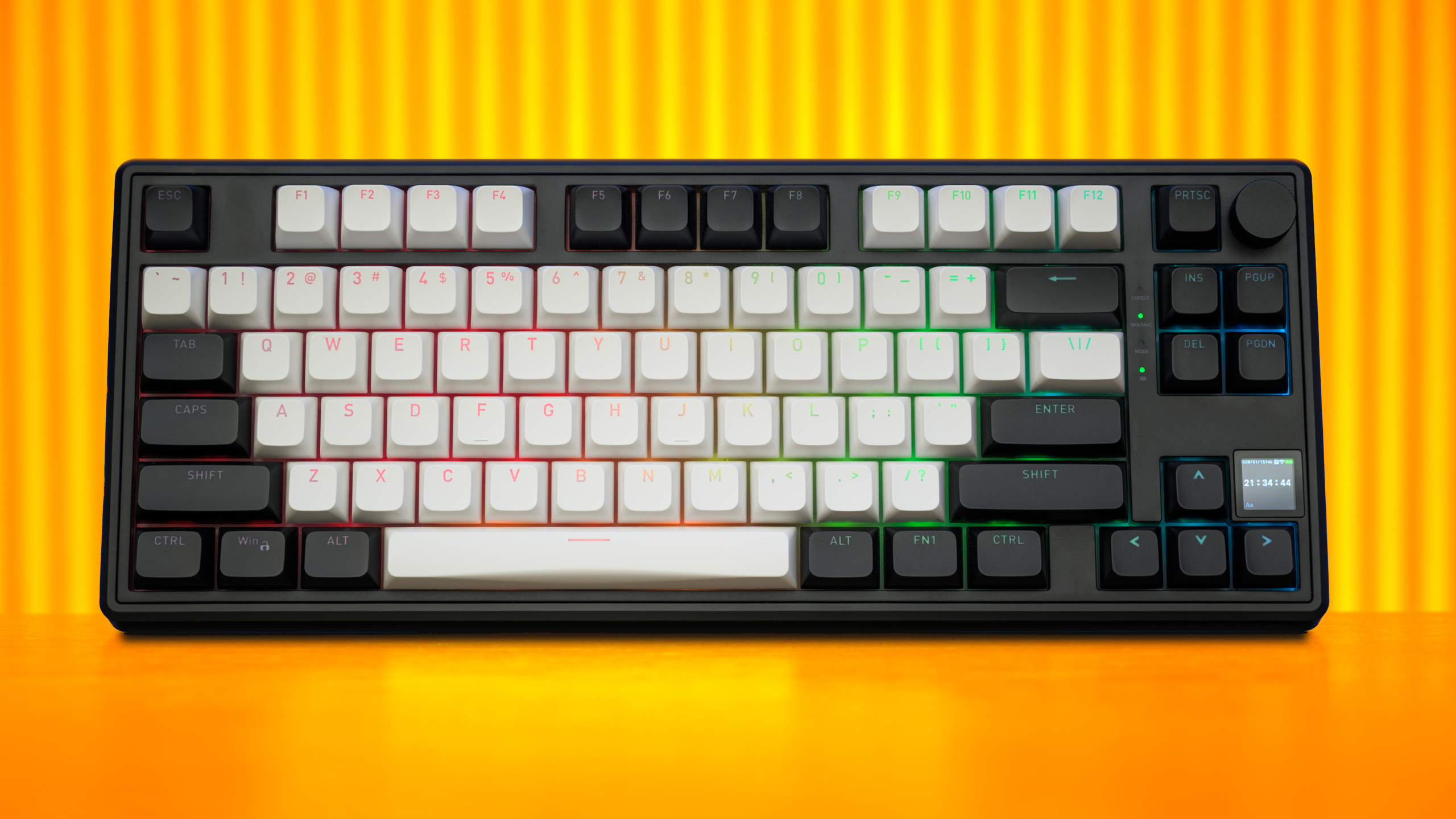 Voor enkel de verlichte kant voldoen de knopjes al snel, maar de on-board RGB-verlichting beperkt zich zich tot een handvol vaste kleuren en een regenboogshow. Vanzelfsprekend kunnen de kleurenlampjes veel meer, maar voor lichtprofielen op maat zijn extra middelen (en iets meer moeite) vereist.